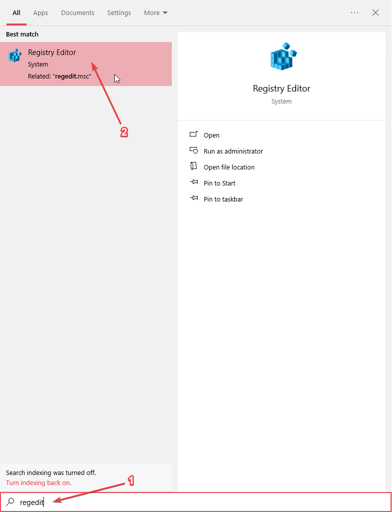 To backup the registry, open it first by searching for “regedit” then clicking on registry editor