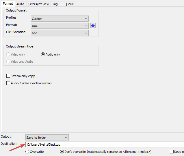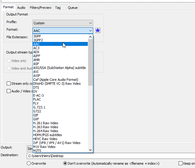 Then select the format AAC or Matroska audio (or whatever codec the video is using for the audio) (click here to find out which codec your video is using for audio) (I recommend using Matroska audio instead of AAC)